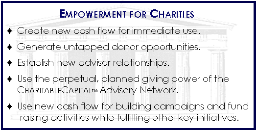 Why not assist donors by using the CharitableCapitalTM planning tools which Congress has made available for over 30 years. Planning tools such as: